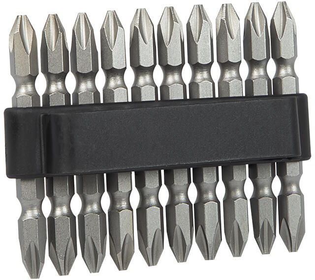 10 darabos kétoldalas bitek készlet A professzionális felhasználók és lelkes barkácsolók számára a 10 darabos kétoldalas bitek készlet nélkülözhetetlen segédeszköz. Ez az egyedülálló készlet ötvözi a minőséget, a funkcionalitást és a kedvező árat, így ideális választás mindenkinek, aki megbízható szerszámot keres a pontos és hatékony munkavégzéshez. Termékspecifikációk:Sokoldalúság: A kétoldalas bitek úgy lettek tervezve, hogy maximális rugalmasságot biztosítsanak a különböző típusú csavarokkal való munkavégzés során. Ezen előnyt különösen majd értékelni fogja a felújítások, összeszerelések vagy javítások során. Kiváló minőségű anyag: Minden bit kiváló minőségű acélból készült, ami garantálja a hosszú élettartamot és a kopásállóságot. Gyakorlati tervezés: A készlet 10 darab bitet tartalmaz, így különböző méretek és típusok közül választhat, hogy könnyedén megbirkózzon bármilyen feladattal. Kompakt csomagolás: A bitek praktikus tárolódobozban vannak elhelyezve, amely lehetővé teszi a