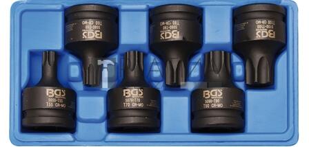 Angol nyelvű leírás (a magyar fordítást lásd lejjebb):suitable for both manual and impact wrenchescan be fixed on impact wrench by pin and O-ringsizes: T55 - T60 - T70 - T80 - T90 - T100includes the following tools:Impact bit sockets, socket internal square 20 mm (3/4"), T-Star (for Torx): T55Impact bit sockets, socket internal square 20 mm (3/4"), T-Star (for Torx): T60Impact bit sockets, socket internal square 20 mm (3/4"), T-Star (for Torx): T70Impact bit sockets, socket internal square 20 mm (3/4"), T-Star (for Torx): T80Impact bit sockets, socket internal square 20 mm (3/4"), T-Star (for Torx): T90Impact bit sockets, socket internal square 20 mm (3/4"), T-Star (for Torx): T100Magyar fordítás (fordító automata segítségével):mind kézi, mind ütéskulcshoz használhatórögzíthető a csavarkulccsal a tű és az O-gyűrű segítségévelméretek: T55 - T60 - T70 - T80 - T90 - T100tartalmazza a következő eszközöket:ütőbuborék aljzatok, belső négyzet 20 mm (3/4 ") , T-Star (a Torx-hez): T55Impakt bit dugók, aljzat belső négyzet 20 mm (3/4 "), T-Star (a Torx számára): T60Impact bites aljzatok, aljzat belső négyzet 20 mm (3/4 "), T-Star (Torx-hez): T70ütőcsavaros aljzatok, belső négyzet 20 mm (3/4"), T-Star (a Torx-hez): T80Ütőcsavaros aljzatok, belső négyzet 20 mm (3/4 "), T-Star (a Torx-hez): T90Impact bit aljzatok, aljzat belső négyzet 20 mm (3/4 "), T-Star (a Torx esetében): T100A BGS Technic családi tulajdonban lévő vállalat, mely az 1970-es németországi megalapulása óta, immár több, mint 80 országban van jelen világszerte. Megbízható minőségének és számos innovációinak köszönhetően, kiváló hírnévnek örvend. A kínálatunkban szereplő kézi-, elektromos- és sűrített levegős szerszámok rendkívül ellenállóak és tartósan megbízhatóak.