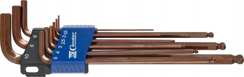 CONDOR Imbuszkulcs, 1.5-10 mm, 9 db, hosszú, golyós, X-cess (38002)