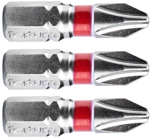 hrot křížový phillips, sada 3ks, PH 1 x 25 mm, S2. Hroty, které Vám dovolí dostat se i tam, kam byste se dostat neměli. Řada Fortum-KITO obsahuje široký záběr od běžně používaných typů až po ty speciální. Všechny hroty Fortum-KITO jsou vyrobeny z oceli nejvyšší třídy S2, přesně frézované a povrchově úpravené buďto vrstvou titanového povlaku nebo pískováním. materiál S2. technické parametry PH 1 x 25 mm. značka FORTUM.