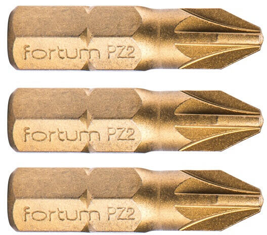 FORTUM behajtóhegy PZ, 3 db, S2 acél, Titanium bevonat; PZ 2×25mm, bliszteren (4741372)