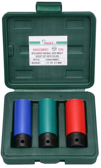 HANS 84603MBC Gépi Hosszú Kerék Dugókulcsfej Készlet - 1/2", 17/19/21 mm, 3 Részes