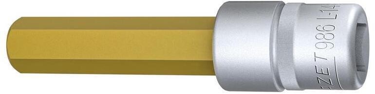 Csavarhúzó foglalat 986L-14Hosszú változat recézéssel Felület: TIN bevonatú DIN 7422 Made in Germany Hajtás: Üreges négyzet 12,5 mm (1/2 hüvelyk) Kimenet: Hatszögű foglalat profil Lapos szélesség: 14 mm Méretek / hossz: 100 mm Hosszúság l1: 62 mm Kézi működtetéshez Miért TiN ...