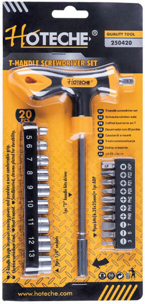 HOTECHE T-behajtó készlet 20 részes dugókulcsokkal+bit fejekkel Hoteche (250420)
