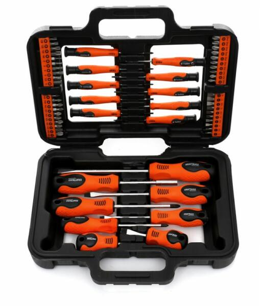 Csavarhúzó- és bitkészlet 58dbA készlet kereszt- és lapocs csavarhúzókat és biteket tartalmaz. A csavarhúzók ergonomikus, gumibevonattal rendelkező fogantyúval rendelkeznek. A 58 részes készlet praktikus műanyagkofferben van tárolva. Technikai paraméterek:Lapos csavarhúzók: 2.4, 3.0, 6.5 x 38, 4.0 x 75, 6.5 x 100, 8.0 x 150 mm Keresztcsavarhúzók PH: PH0 PH00 PH000 PH2 x 38 PH1 x 75 PH2 x 100 mmTorx csavarhúzók: T6, 7, 8, 9, 10Lapos bitek: 3, 3.5, 4, 4.5, 5, 5.5, 6, 6.5, 7, 8Keresztbitek PH: PH0 PH1 PH2 PH3 Keresztbitek PZ: PZ0 PZ1 PZ2 PZ3Bitek TORX: T20, 25, 30, 40 Bitek 6-hatszög: 2, 3, 4, 5, 6 Anyag: króm-vanádium acélDarabszám: 58Súly: 1,5 kg