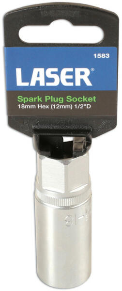 Laser Tools Gyertyakulcs 18 mm 1/2" - gumibetétes kivitel - hatlapú (LAS-1583)