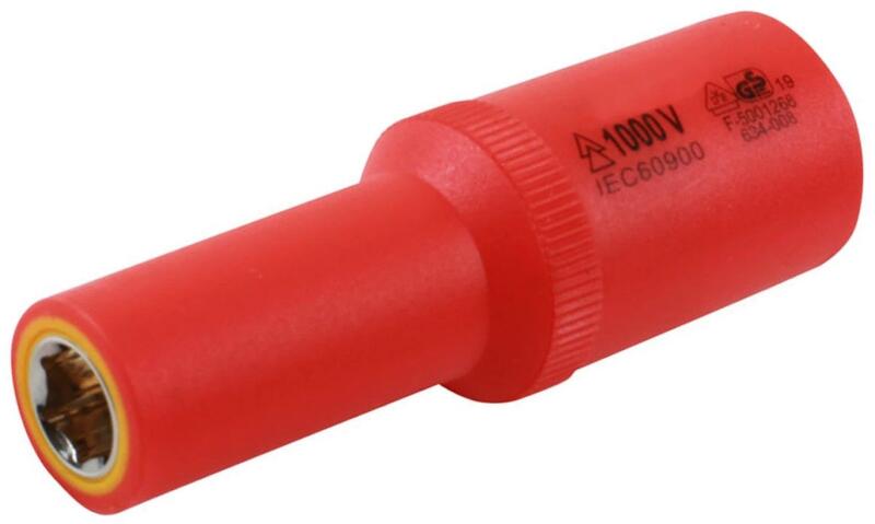 Laser Tools LAS-7564 3/8"-os 6 lapú VDE 1000 V szigetelt mágneses dugókulcs fej, hosszított kivitel, 13 mm (LAS-7564)