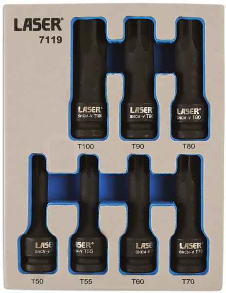 Laser Tools Légkulcsfej készlet 1/2" Torx T50-T55-T60-T70-T80-T90-T100 x 78 mm - (LAS-7119)
