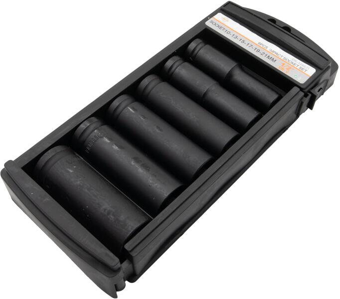 Ez a 6 részes 1/2" gépi dugókulcs készlet kimondottan ütvecsavarozók és gépi meghajtású szerszámok használatához készült. Minden fej 78mm hosszú, így ideális a nehezen hozzáférhető, szűk helyeken végzett munkákhoz. Erős, tartós kialakítása miatt tökéletes választás autószerelési és ipari felhasználásra, ahol nagy igénybevételnek vannak kitéve a szerszámok. Főbb jellemzők 6 részes gépi dugókulcs készlet Meghajtás: 1/2" Hossz: 78mm mindegyik fej Méretek: 10mm, 13mm, 15mm, 17mm, 19mm, 21mm Ütvecsavarozókhoz tervezve Masszív felépítés a nagy nyomatékú alkalmazásokhoz