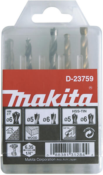 Paraméterek: Felhasználás: kőzet, fa, fém Átmérő (D): 5,0 - 6,0 mm Mennyiség: 5 Hatlap befogóméret (lapok közötti távolság): 1/4"