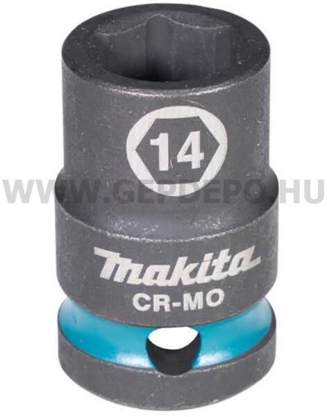 Makita CR-MO gépi dugókulcs 1/2 14x38 mm A Makita Impact Black sorozat 14 mm-es gépi dugókulcsa ½ négyszög csatlakozóval és 38 mm hosszúsággal készül. A króm-molibdén anyagból gyártott kulcs pontos illeszkedést és nagy tartósságot biztosít még intenzív használat mellett is. Makita-teal színű pánttal és jól látható méretjelöléssel rendelkezik a könnyű azonosítás érdekében. Az O-gyűrűt és a reteszelőcsapot nem tartalmazzák, ezek igény szerint külön szerezhetők be.