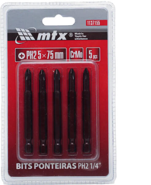 MTX PH2 bitek 5x75 mm 1/4'' 5 darab (1137155)