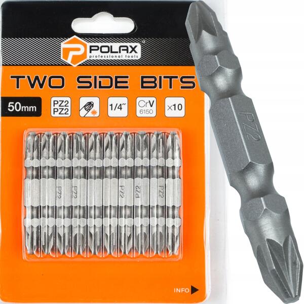 POLAX Kétoldalas bitkészlet 50mm PZ2 PZ2 1/4" 6150CRV (10 db) Polax (51-088)