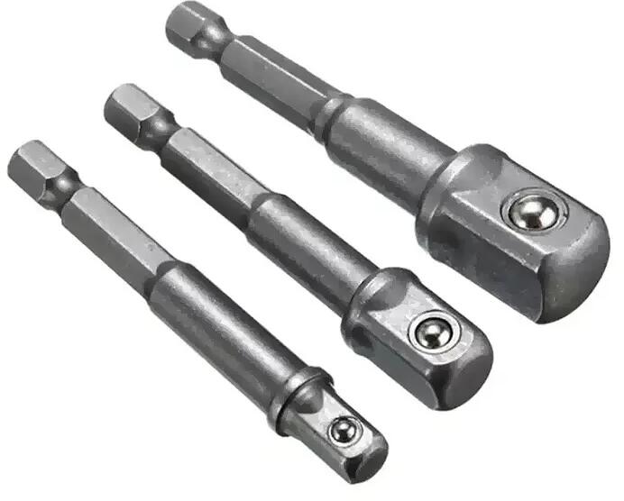 Három adapterből álló készlet a csavarhúzóhoz 1/2, 3/8 és 1/4 méretben.   Masszív szerszámacélból készült, nagy szilárdságot és hosszú élettartamot biztosít. A termék jellemzői és specifikációja: