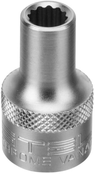 12 oldalas krómozott krovafej Stels, 8 mm-es, CrV acélból készült, 1/2 hüvelykes négyzet alakú, menetes kötõelemek meghúzására és lecsavarására szolgál, Autószerelésben, otthoni és professzionális felhasználásra is alkalmas. A 12 oldalú fejnek kisebb az elfordulási szöge a 6 oldalakhoz képest - 30 fok, ami megkönnyíti a szűk helyeken végzett munkát.