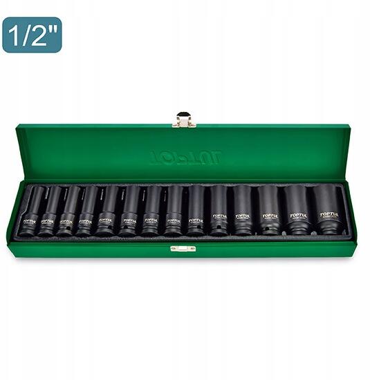 TOPTUL Hosszú, 1/2"-os dugókulcs készlet, 10-32 mm, 14 darabos, Cr-Mo acél Toptul GDAD1401 (GDAD1401)
