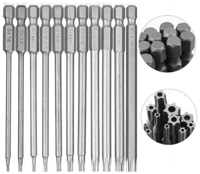 Torx Bit Hosszú Készlet 11db 100mm-es Csavarkulcs 1/4 Hüvelyk (Zestaw końcówek wkrętakowych 11 sztuk)