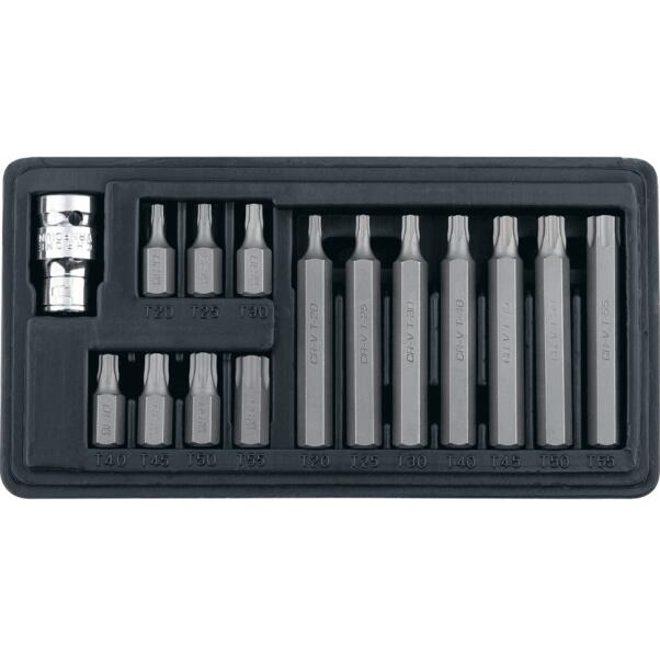 Csavarbehajtó bit készlet "TORX", hex nyél, CrV, 10 mm, 15 darab, kofferben//Stels