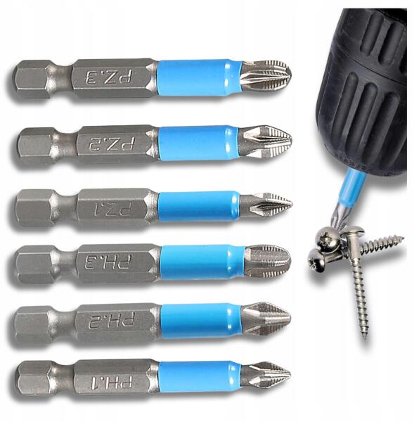 Ütésálló bit készlet 6db csavarhúzóhoz fúróhoz mágneses 50mm S2 PH2 (Komplet bitów udarowych 6szt)ALLEGRO