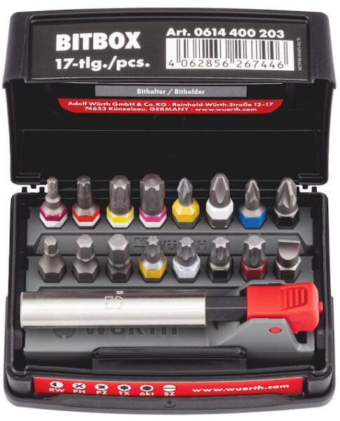 Würth WÜRTH Bit-készlet, C 6, 3 (1/4) bit-tartóval, 17 darab (0614400203)